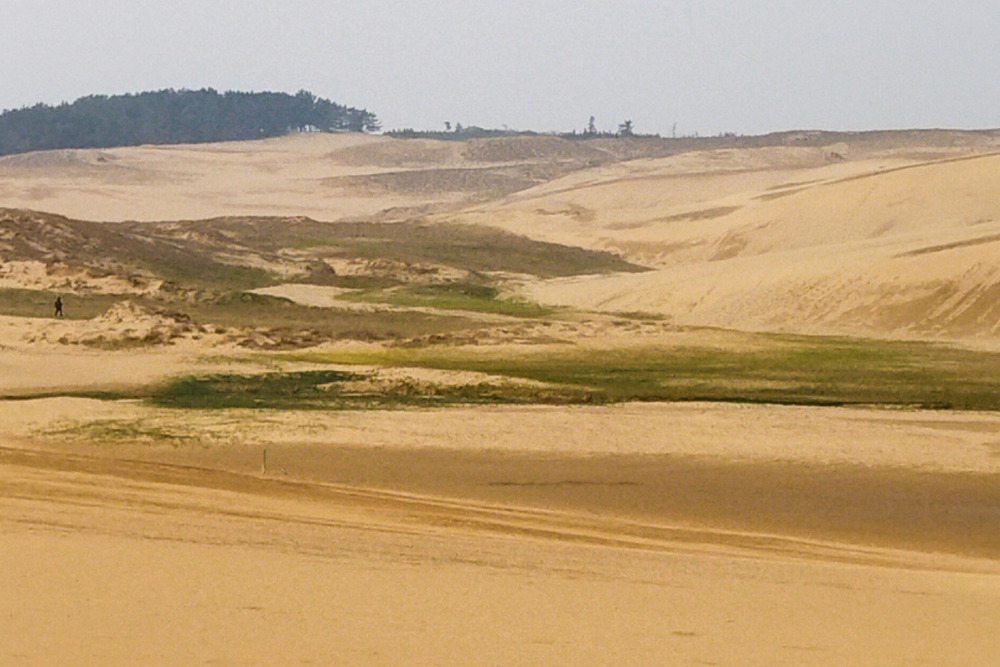広大な砂丘を一生懸命歩きすぎて、左膝を痛める。