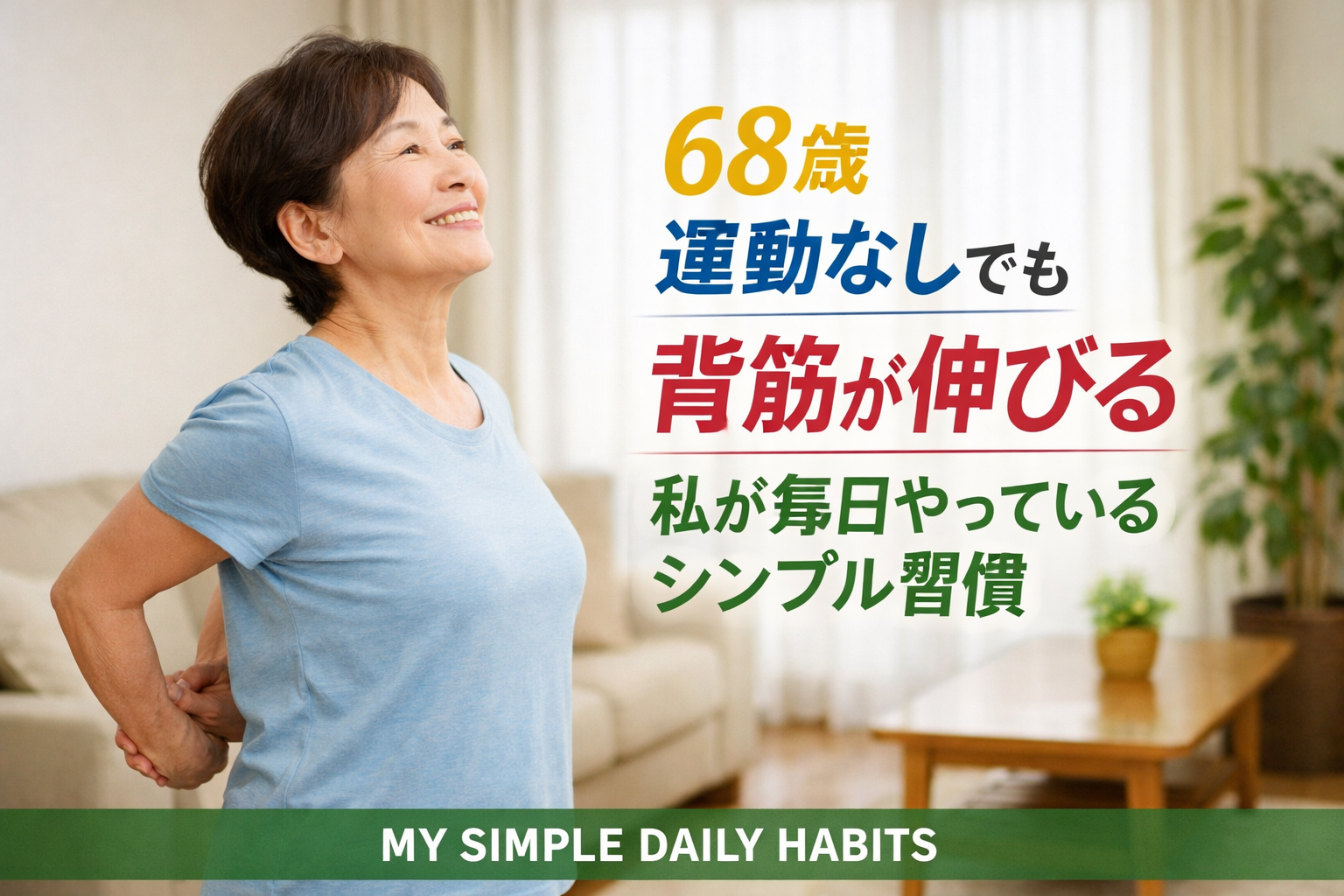 運動はしていませんが、毎日「背中を丸めないこと」だけは意識してきました。