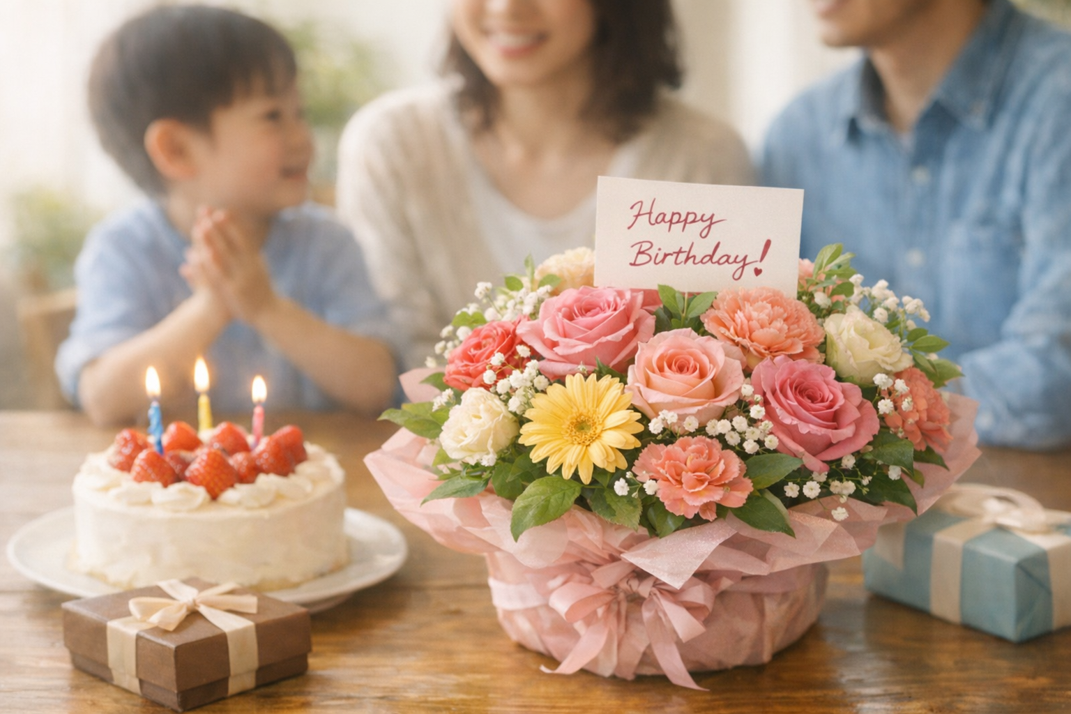 家族の誕生日や記念日に花を贈ると、